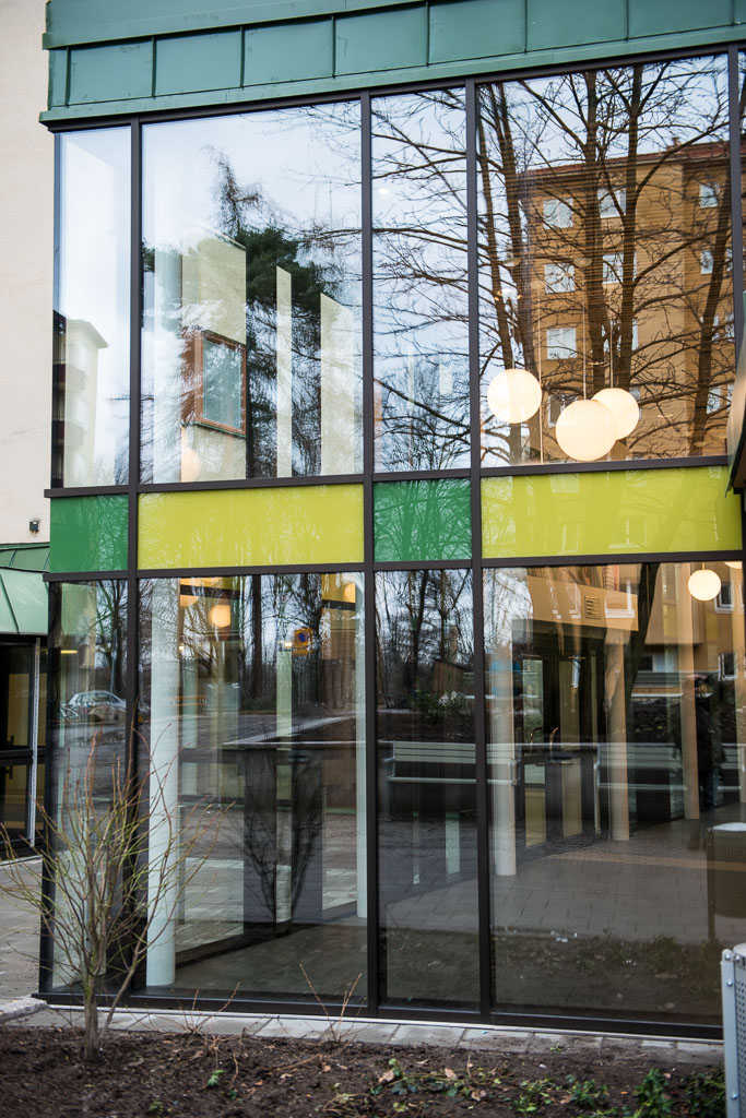 I samband med en större om- och tillbyggnad 1985 fick det som då var Gärdets sjukhem konstnärlig utsmyckning genom Landstingets konstnämnd. Ernst Nordins skulptur ”Drömmerskan” placerades på gården vid Sandhamnsgatan. Hon står där, stadigt förankrad på jorden och djupt försjunken i sina tankar. Försjunken i egna tankar tycks även Göran Langes ”Sovande hund” i gotländsk kalksten.